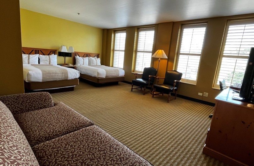 Perfect for a family getaway, this comfortable room with Two Queen Beds features custom plantation shutters, two queen beds with crisp cotton sheeting and beautiful views of the Alamo, city views or the unique lobby atrium. Each historical accommodation comes in a variety of room type configurations. Room photos are an example of just one configuration, but may not be the exact depiction of each configuration. (Several rooms in this category are still double/double with oversized layout and sofa)